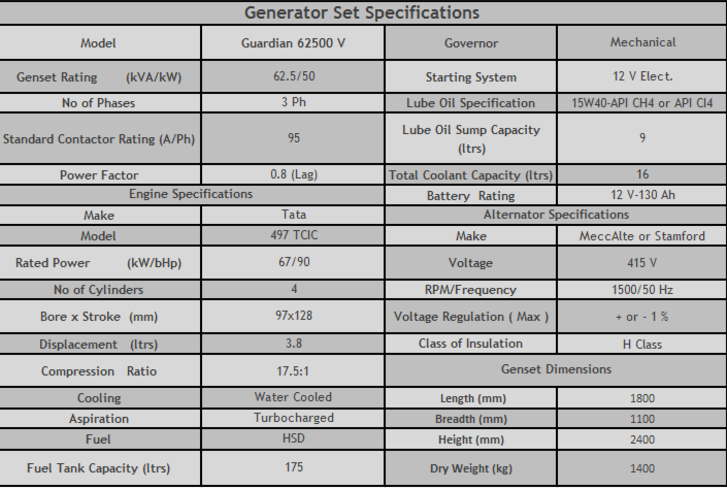 Guardian Gensets provide fuel economy, best warranty terms and lowest cost of maintenance.