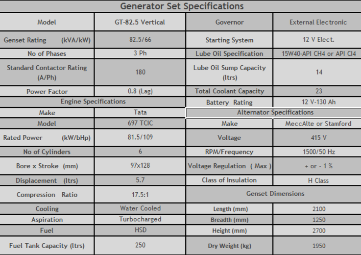 An advanced Tata Motors ( TML ) or Volvo Eicher ( VECV) engine powers the Guardian Residential Gensets. Engine incorporates the latest technology, which translates to lower maintenance cost & environmental benefits. The specifically designed water cooled engine is light in weight, compact, has high torque and is low on vibration. This enhances fuel efficiency and longevity of the genset.